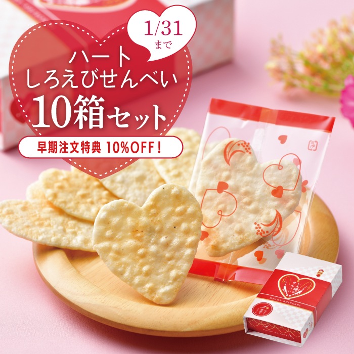 【早期特典付】ハートしろえびせんべい10箱セット 手提げ袋付き