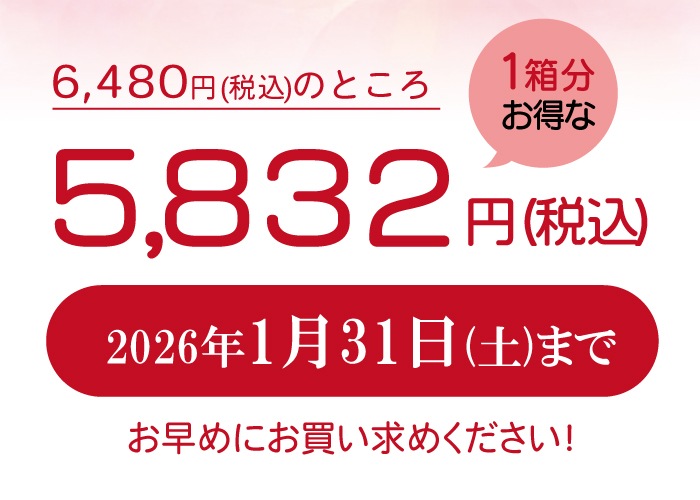 ・通常1箱648円(税込)(10箱税込6,480円)⇒1箱お得な5,832円(税込)